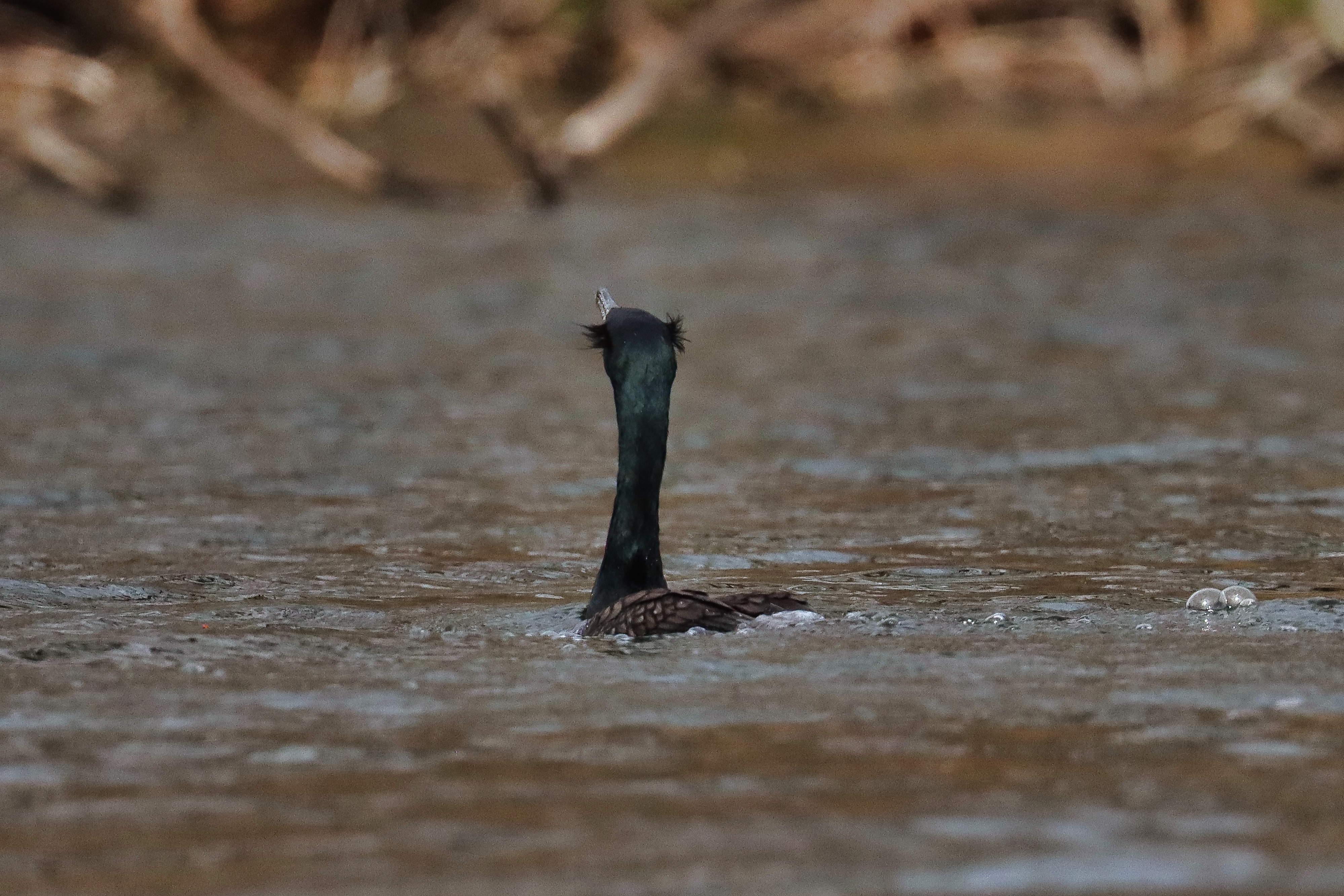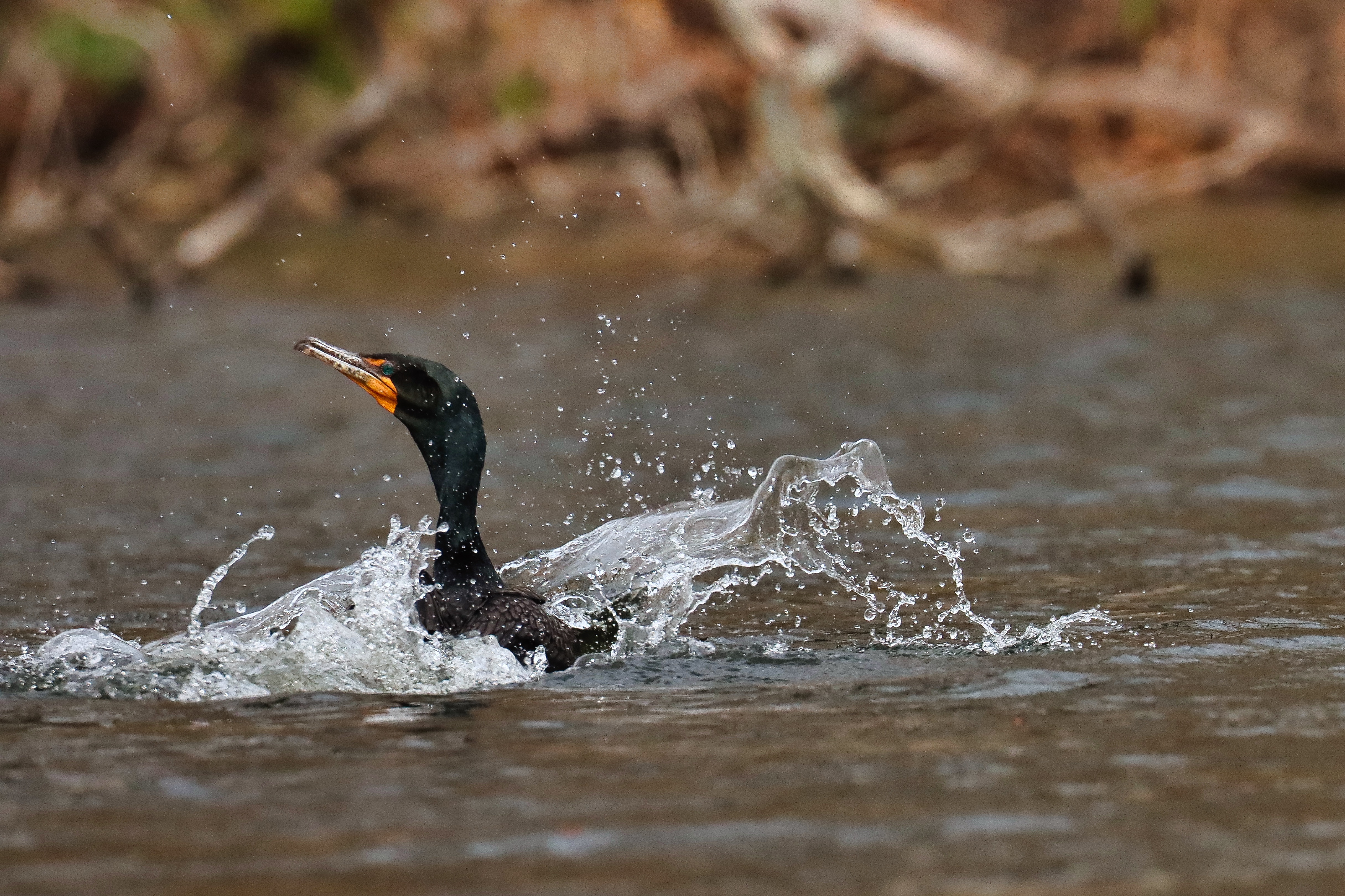 As I watched I noticed something was in its mouth…a frog. It began walking away from the road and down into the drained pond through the mud and shallow waters. It began to thrash its head toward the muddy bottom sending mud and water into the air. Lifting the frog up ,mud flinging everywhere, and then back down, the egret repeated this process several times. The frog immobilized the egret walked along the shallow waters edge to a nice quiet location where breakfast could be served.